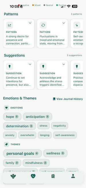 AI that connects your journal entries, mood and body data to show you patterns you wouldn't spot yourself.